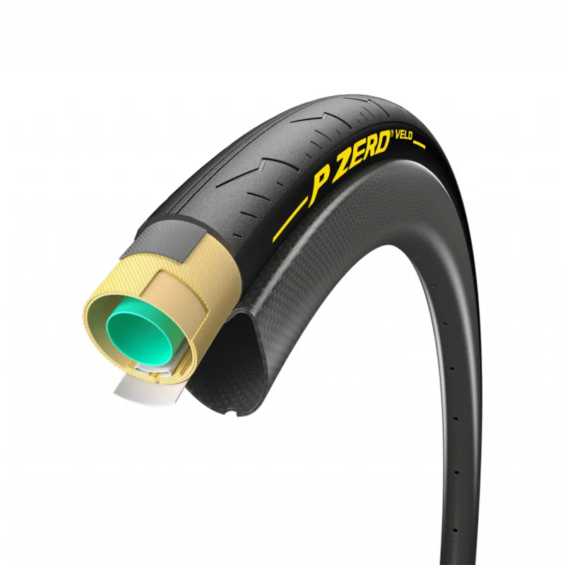 P ZERO™ Velo Tub is the result of several months of intensive development work of the R&D department of Pirelli with World Tour PRO cyclists and mechanics. All the elements of the final version of P ZERO™ Velo Tub has been tested, modified and tuned on that environment: built on the finest 320tpi Corespun with aramid reinforced casing, latex inner tube for improved weight, rolling and puncture protection; Yellow Soft compound for uncompromising grip and handling performances.