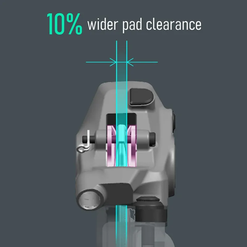 - 10% wider pad clearance decreases the chance of rotor rub