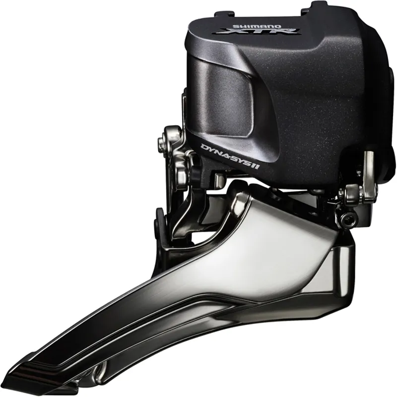 XTR Di2 Dyna-Sys 11-speed front derailleur's operation is pioneering, smooth shifting is guaranteed thanks to a microchip communication link with the gear levers. What's more, shifting the rear derailleur automatically trims the front derailleur. The biggest difference you will notice is just how much quicker and effortlessly smoother shifting on the front chainrings is, even under load. The difference in the effort and time to actuate the shift between mechanical and Di2 is truly staggering