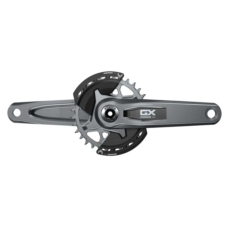 The GX Eagle Transmission DUB crankset gives no-nonsense riders a no-compromise balance of form and function. It’s the crankset where pure performance meets optimal value. Its two independently removable composite bashguards add durability and allows riders to manage scuffs and scrapes that come with the territory. Protecting and preserving the unique shape of its forged aluminum design to deliver maximum performance with minimum bulk.